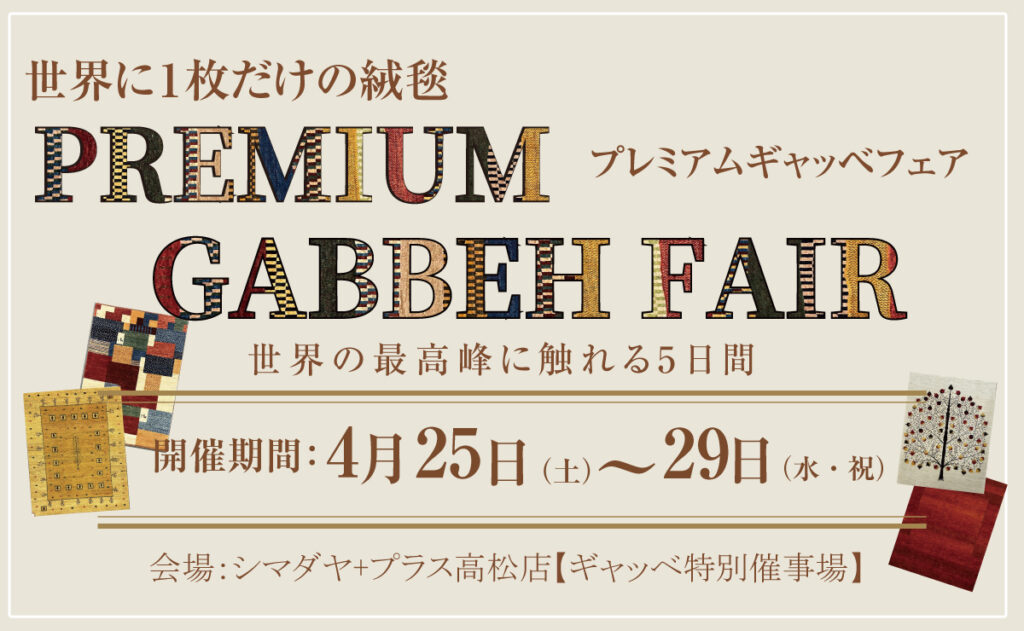 シマダヤ高松店では、プレミアムギャッベフェアを開催いたします。