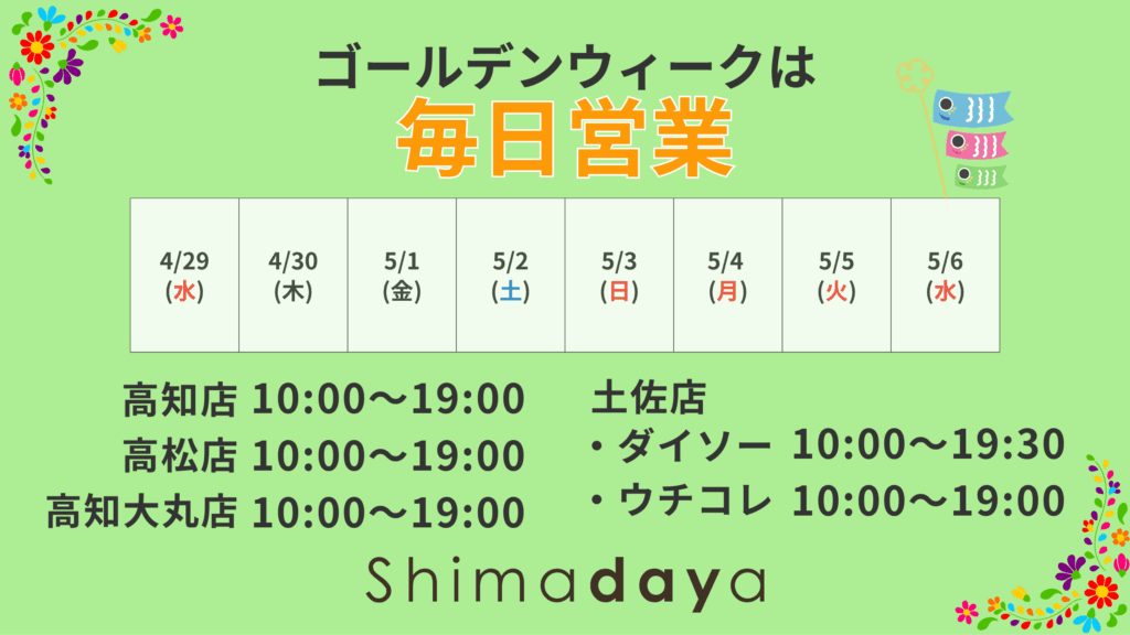 GW期間中は水曜日も営業いたします。