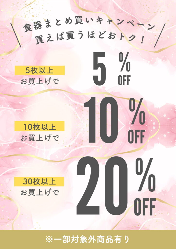 期間中は、食器のまとめ買いがおトクになるキャンペーンも同時開催。